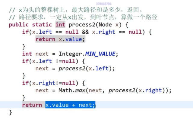 basecase先写出来,当左右孩子都没有的时候,返回当前值。然后找左右孩子的最大值递归值,返回头节点加上该值即可。 - 算法题