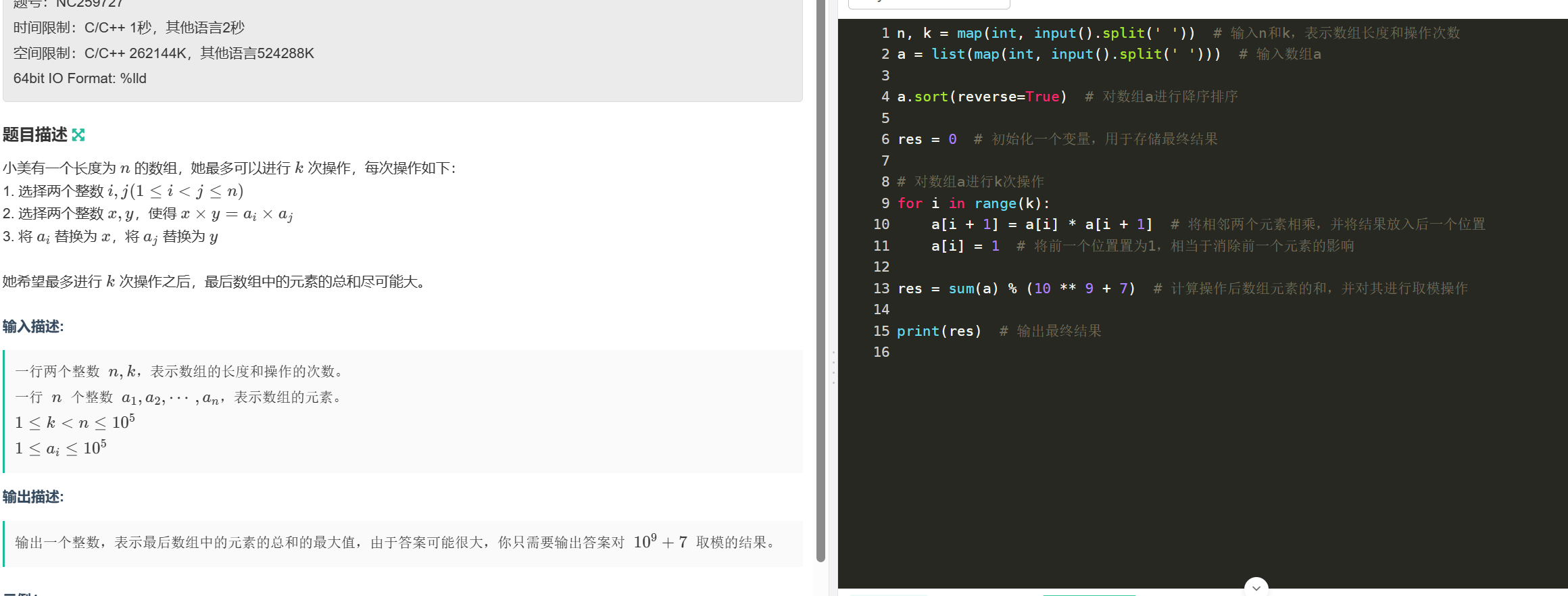 2024.04.16_学习日记 Posted on 2024-04-16 Edited on 2024-04-17 In 学习日记 Views: 天气:晴学习地点:学校学习时长:10h 学习内容 机考是ACM如果是要输入多行多个数据,那么就要用split函数去分割input,然后用map函数把数值变为int,再转化为list才能变成一个列表list。最后还要print。如果输入多行就要用while True才行。第一行是一个数的话直接n=int(input()),然后再用try except,里面可以加ifelse,或者用for循环也可以题目说了只有两行就不用while,也不用转换为int类型。 最长回文子串动态规划解法 计算质数 环形公路注意交换xy位置 美团题 美团题